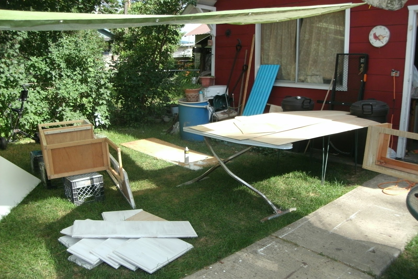 | Teri finishing the street side floor. As of today (8/3/12) it is finished! (Leave it to Cynthia to take the worst pictures of me! The one above is even worse than this one!) |